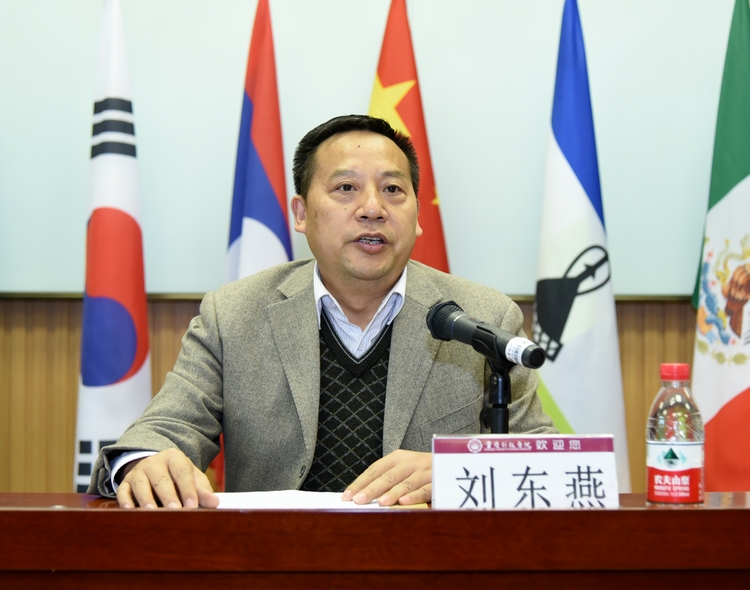 刘东燕在开学典礼上致辞。他代表学校对2017级国际学生的到来表示热烈欢迎,并向他们简要介绍了重庆的历史、人文、地理和经济情况。他希望2017级国际学生能克服语言不通和环境变化带来的困难,在教师和同学的帮助下,尽快适应重庆、适应学校的学习和生活。他希望国际学生以字为媒、以言会友,积极参加学校各种活动,用好语言环境和学习资源,努力学好语言和专业知识,成为中外文化交流的桥梁和世界和平的使者。